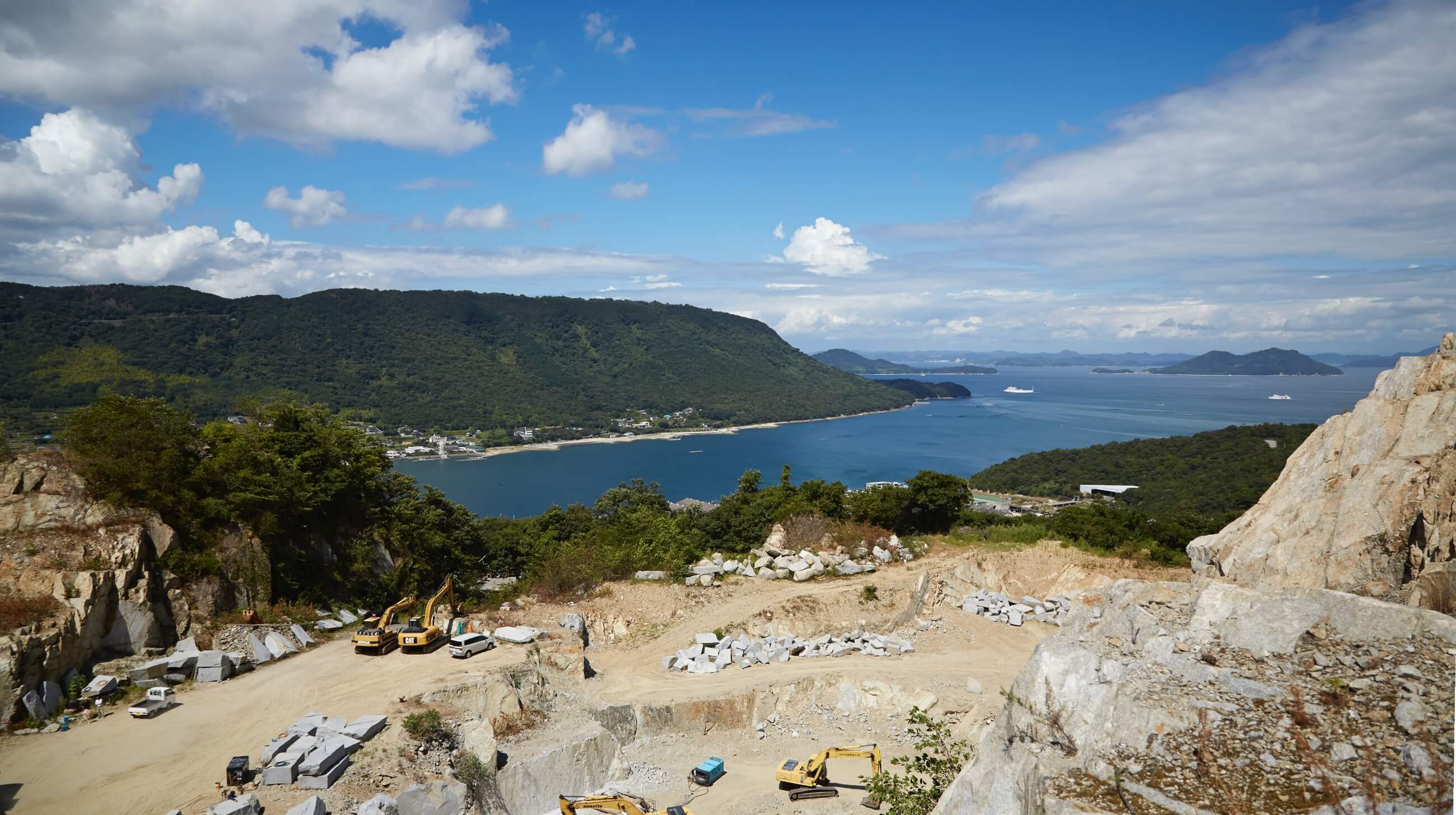 香川県高松市の北東部、源平合戦の舞台で有名な屋島の対岸に位置する霊峰・五剣山。その山麓の庵治町・牟礼町で採掘されているのが銘石「大丁場 庵治石」です。